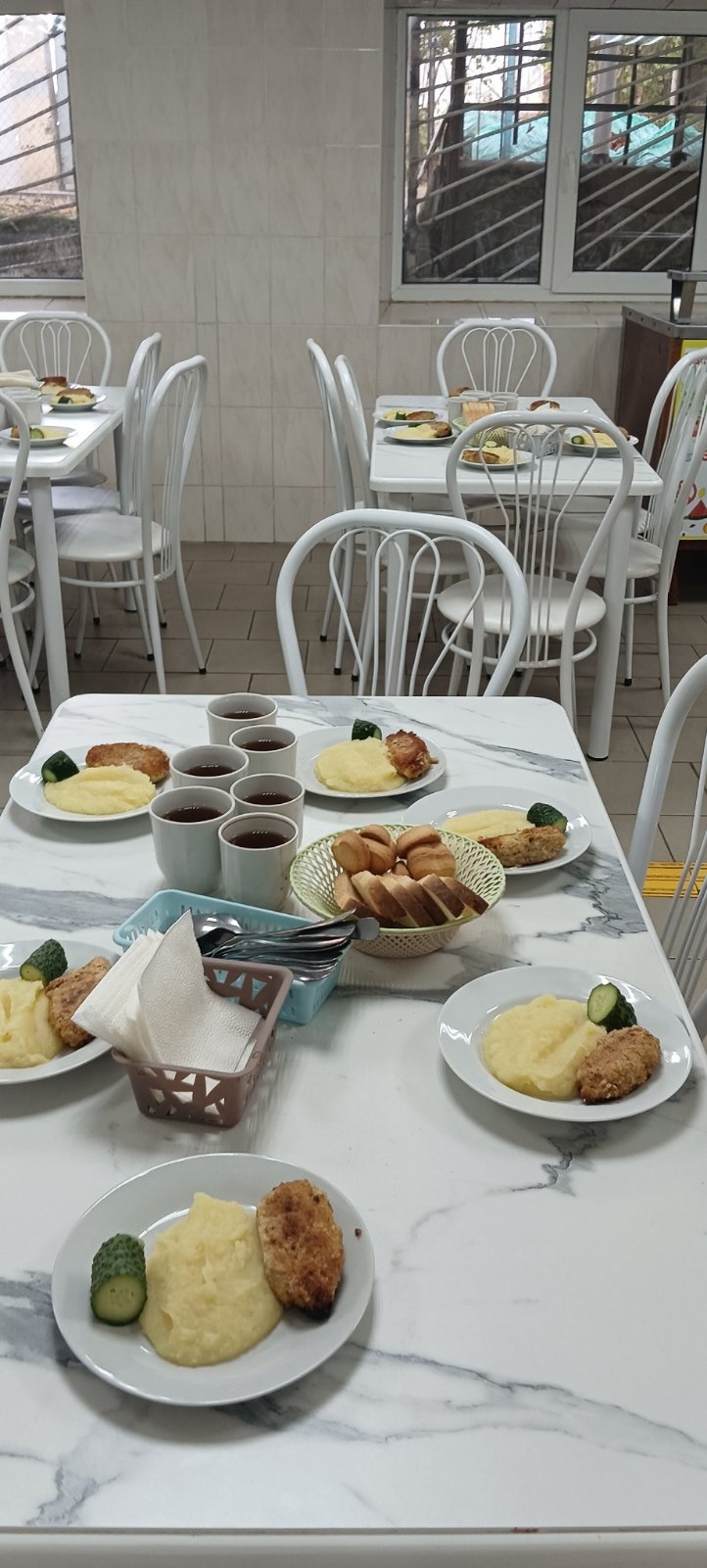 Питание организованно в помещении столовой, расположенной на 1 этаже учебного здания (150 посадочных мест). Перед обеденным залом столовой оборудована зона, где расположены умывальники с подачей воды.